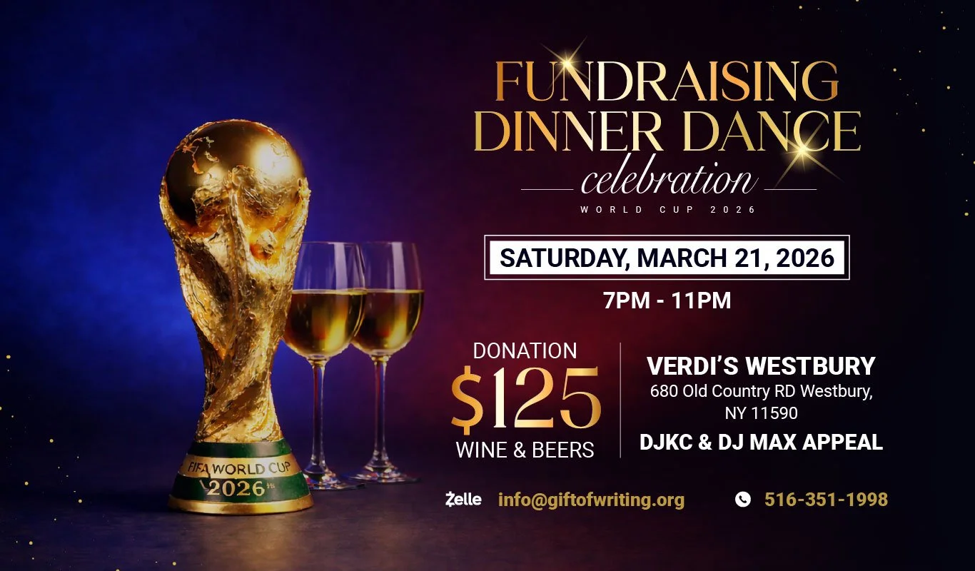 For information on how to make a donation please email: info@giftofwriting.org or call